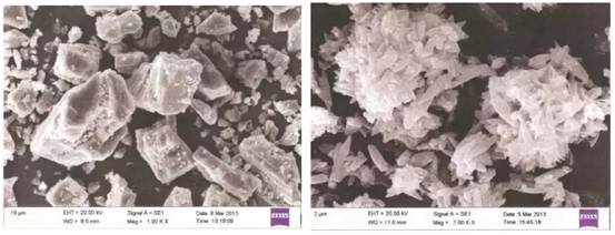 Due to the mechanical crushing and grading of heavy calcium products, the particle shape is generally cube, polygon, cuboid and other irregular forms, as shown in Figure 1. For different heavy calcium processing methods, the microscopic shape of calcium carbonate is different, for example, the calcium carbonate processed by grinding is spindle shape, and the calcium carbonate processed by air grinding is granular shape.